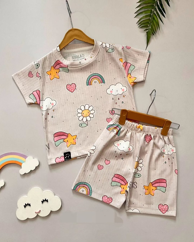ست تیشرت شلوارک بچگانه دخترانه پسرانه لباس خانگی خنک نخی راحتی