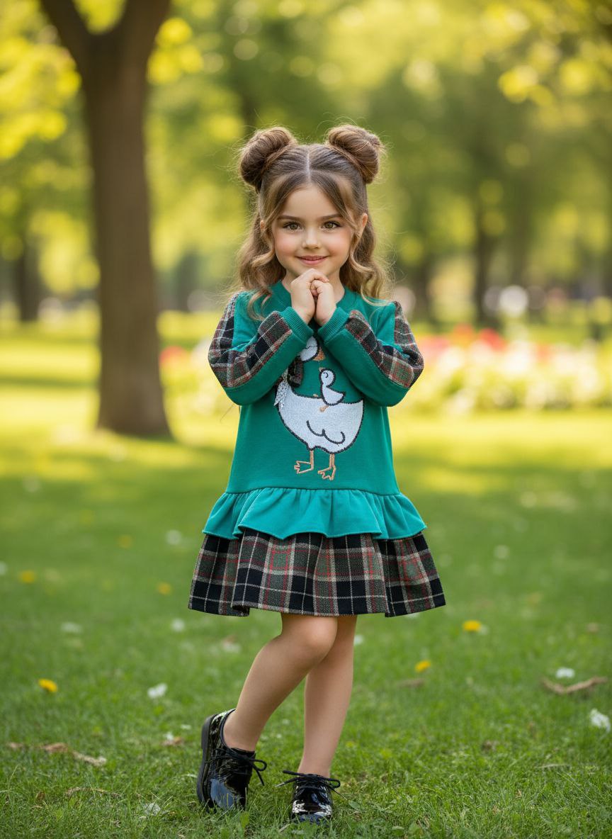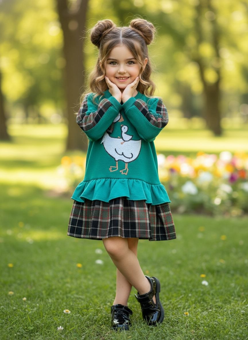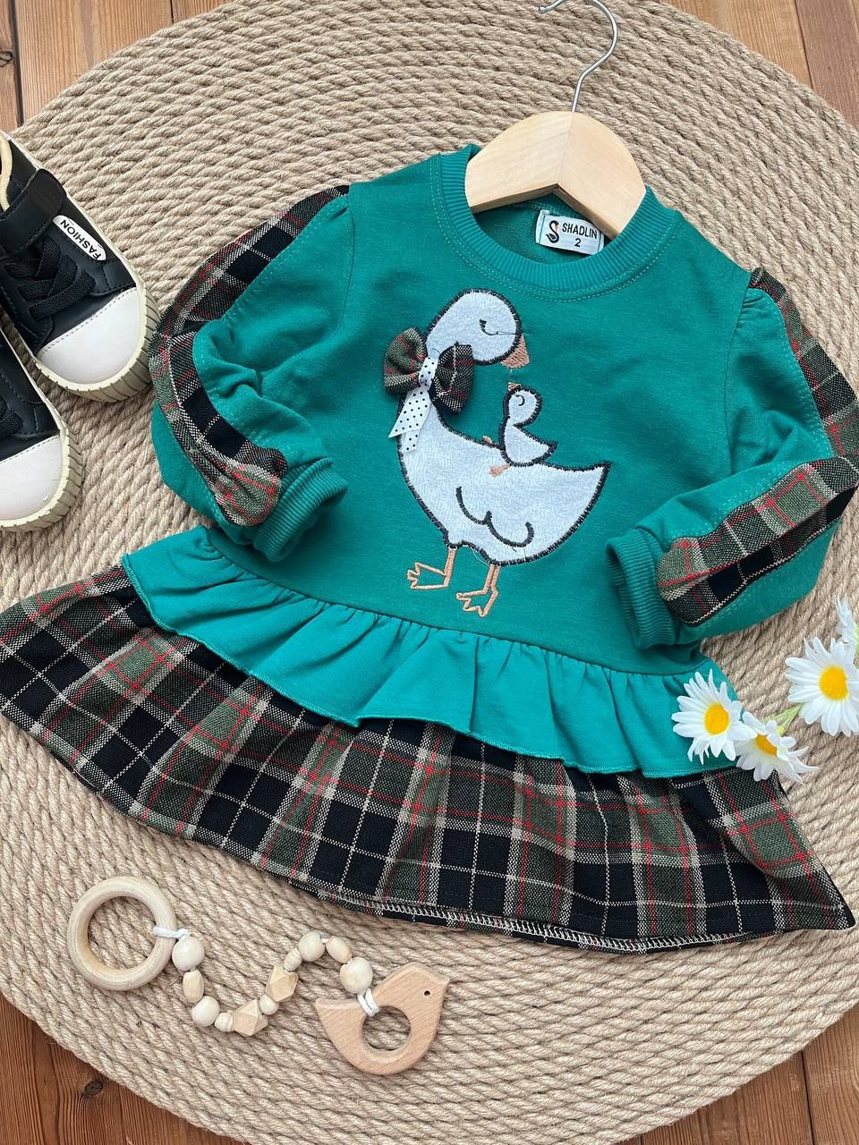 سارافون و پیراهن دخترانه طرح قو یلدایی مناسب ۲تا۶سال